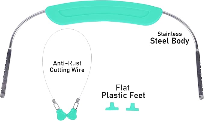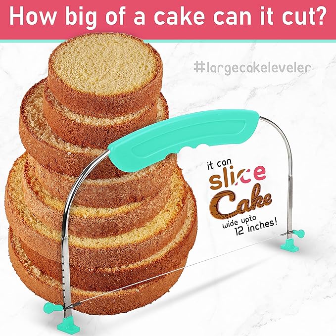 - 🍰 تصميم مناسب لكيك التورتة: استمتعي بتجربة قطع كيك التورتة بسهولة مع قطاعة الشرائح الكبيرة بتصميم أنيق وقابل للتعديل، حيث تمتاز بقدرتها على قطع الكيك بحجم يصل إلى 14 بوصة، وذلك باستخدام سلك القطع المتموج المصنوع من الفولاذ المقاوم للصدأ. مما يجعلها ليست مثالية لتقطيع الكيك فحسب، بل إنها أيضًا مثالية لتقطيع الخبز والجبن وكيك البراونيز وحلوى الأرز المقرمشة بكل سلاسة وبدون فوضى.