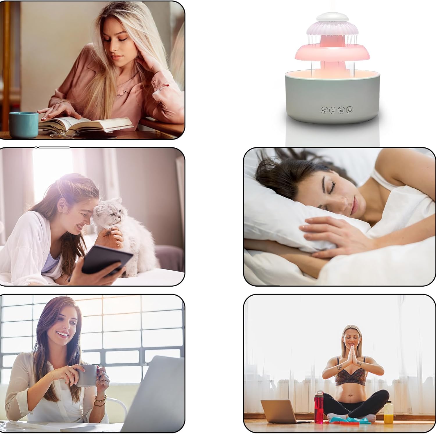 مش بس بترطّب الجو، لأ كمان بتعمل صوت مطر حقيقي مع قطرات بتنزل زي الواقع! هتحس إنك نايم على شباك في يوم شتا دافي.
