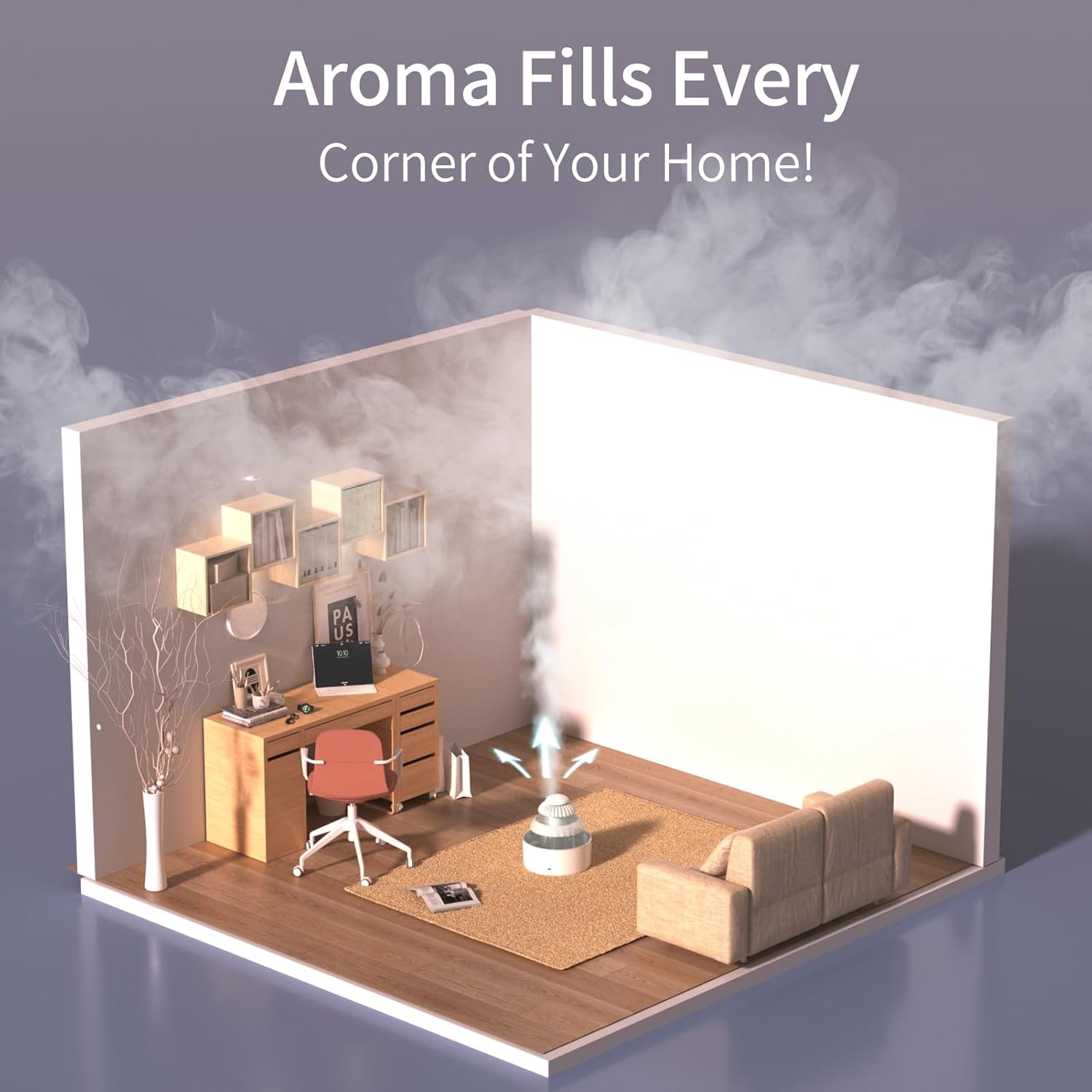 ضيف أي زيت عطري بتحبه، والفواحة هتنشره في الجو بلُطف مع بخار خفيف يخلي الأوضة كلها ريحة مريحة ومهدّئة.